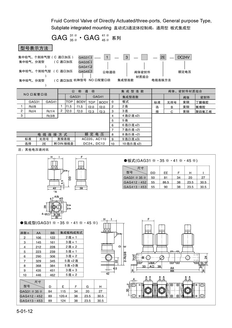GAG31/35/41/45直通式3通阀:通用型 板式集成型