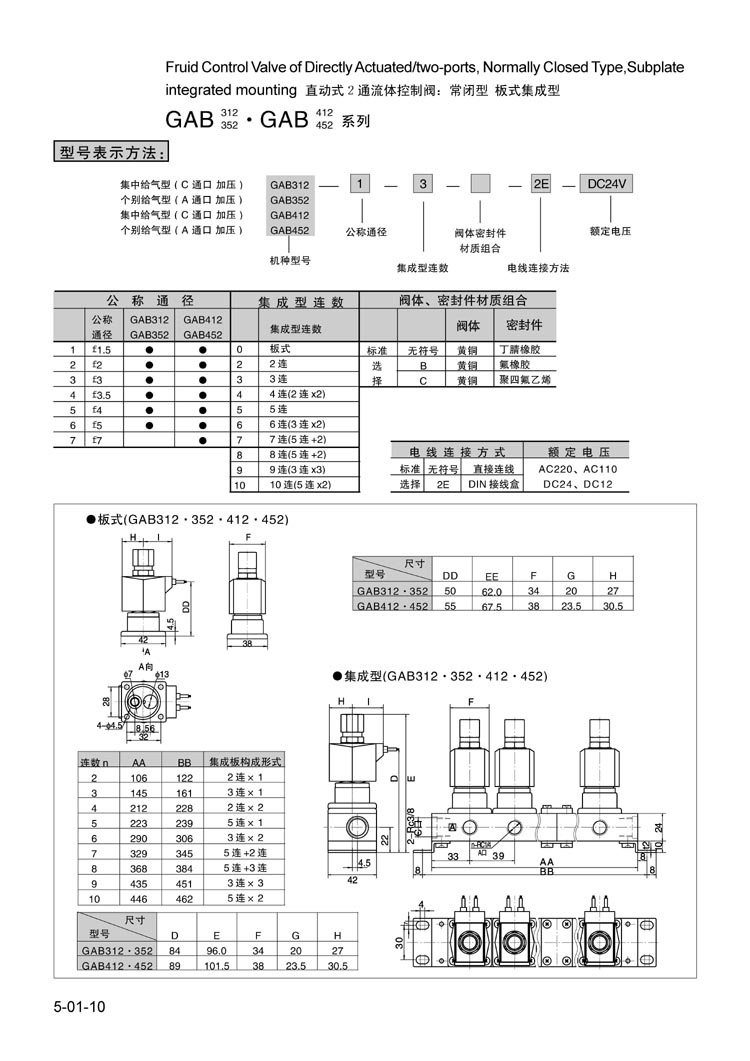 GAB312/352/412/452直通式2通阀/常闭 板式集成型
