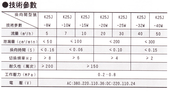 K25J-W系列是二位五通管接截止式换向阀。该阀结构简单,动作可靠,维修方便,尤其适用于较为恶劣的工作环境,可电控或气控两种。