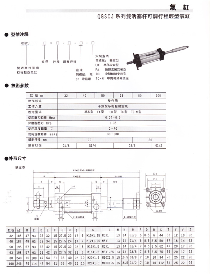 QGSCJ系列双活塞杆可调行程轻型气缸